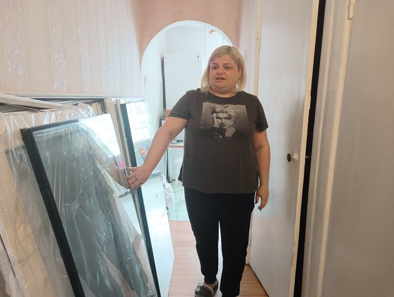"Два тижні чекали чи три. Вже нарешті вікна в нас мають стояти! Ніякої комісії, ніхто не їздить, збори за зборами, ніхто нічого не може сказати... Це в зал вікно, що ми зараз міняємо, а на балконі в нас було дерев’яне, і воно повністю вилетіло. Ми поставили склопакет", — сказала жінка.