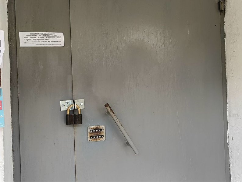 Мешканці багатоповерхового будинку на проспекті Відродження розповіли Суспільному, що роботи з відновлення їхнього будинку тривають дуже повільно. На під’їзді будинку, квартир якого поруйновано найбільше — висить замок.