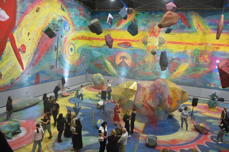 Для «Космогонії» у музеї виділили нову залу площею 5 тис. кв. м. Мистецькі сюжети показують взаємодію добра і зла у часопросторі через призму трьох світоглядів: філософського, релігійного та міфологічного, щоб спонукати глядачів до рефлексії про своє існування, про свою місію, про власну внутрішню «космогонію».