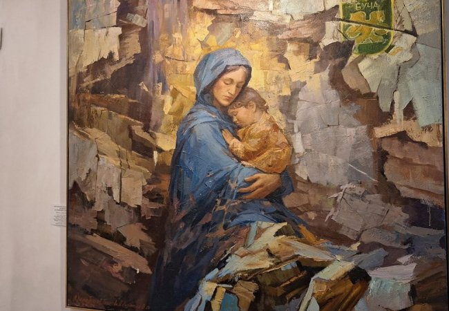 "Свої роботи художники писали під час війни, під атаками бомб і безпілотників, вони пережили втрати рідних, своїх домівок. У своїх роботах вони зобразили міста, які найбільше постраждали від війни", — розповів автор ідеї та організатор мистецького проєкту, народний художник України Володимир Козюк.