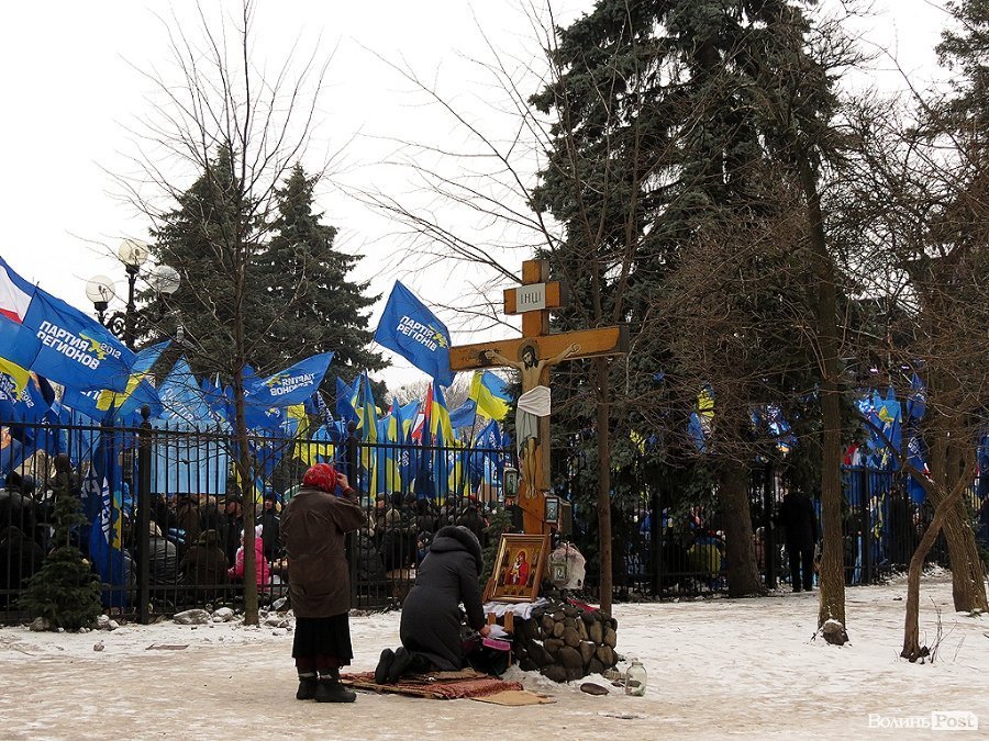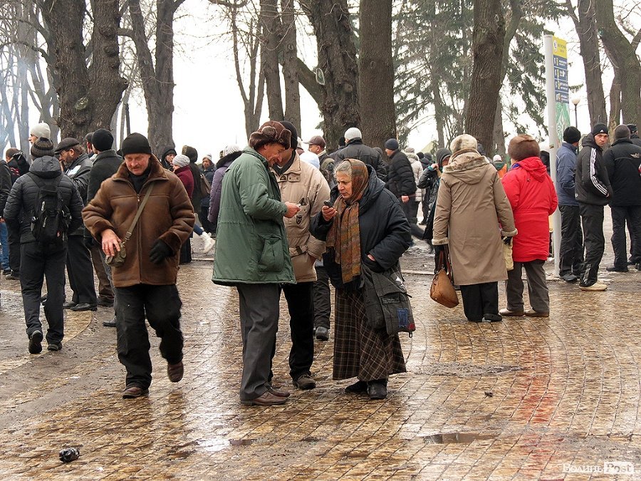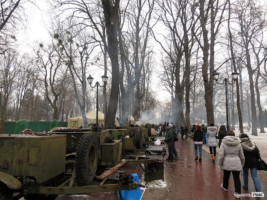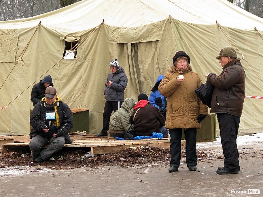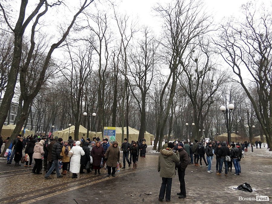 Дійшла до чергового перехрестя, стою, думаю, куди полізти, але не влізти. Підходять до мене двоє хлопаків сумнівної зовнішності. Я би сказала, що вони тут не перший тиждень, або й не перший рік. "Дєвушка, чо тут стоїте? Сфотографіруйте нас" - фотографую. "А коли дєньгі за Януковіча будуть давать?" - "Не знаю". - "Тут стоїте і не знаєте?" - "Ні, а ви звідки?" - "Тернопіль. А ви?" - "Луцьк, Волинська область". - "А ето десь на сході?" - "Що ж ви, хлопці, кажете, що з Тернополя, а де Волинь не знаєте". Це були Володимир і Сєрий.