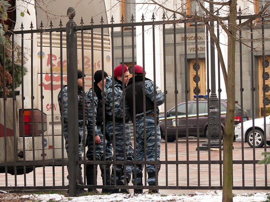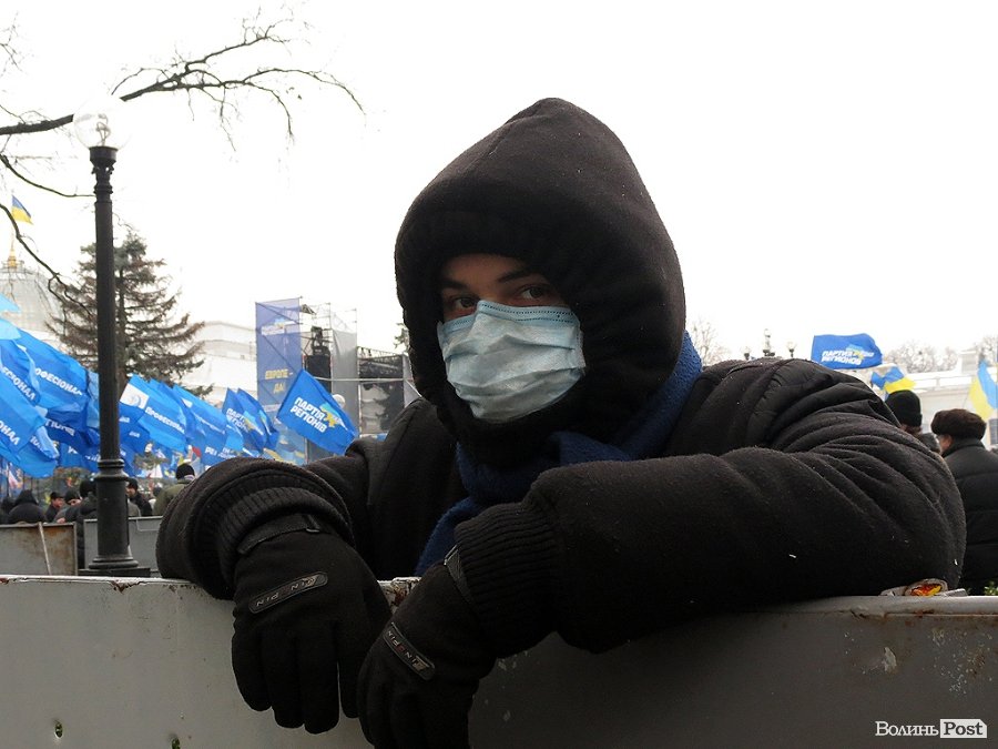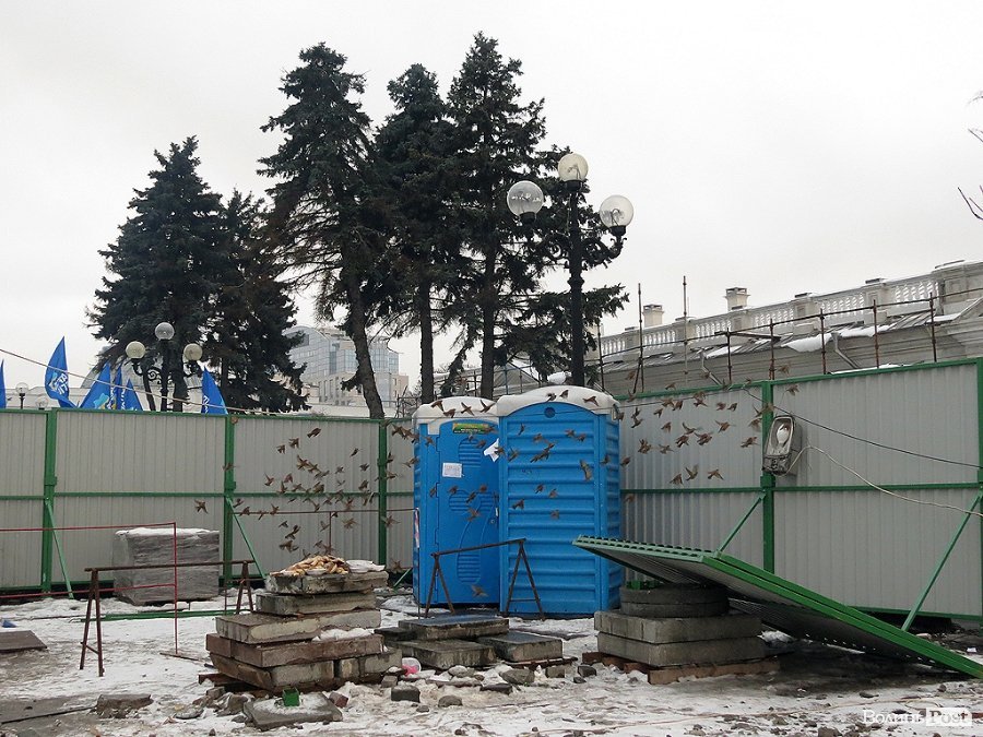 Стояти змерзла, вирішила потинятися. Куди - не знаю. Пішла ближче до "серця ПеРеконаних" - "клітки". По периметру - міліція поряд з "добровольцями". Хлопець - в масці, лише очі світяться. Питаю, чи можна сфотографувати. Відповідає, що можна. В'ячеслав із Черкас. Не змерз, лише втомився - вже годину стоїть на варті. Кажу, що слабак, міліція стоїть довше. Він працює дві години через дві. Питаю: "За ідею?" - "За ідею!" - "Серйозно?" - "Звичайно, що за ідею". Підходить його товариш, каже: "Ми з Черкас". - "Знаю, твій друг вже все розповів: як працюєте і що стоїте за ідею". - "За Януковича?? Та я його ненавіжу того Януковича! Ми тут дві години стоїмо і йдемо на той майдан".