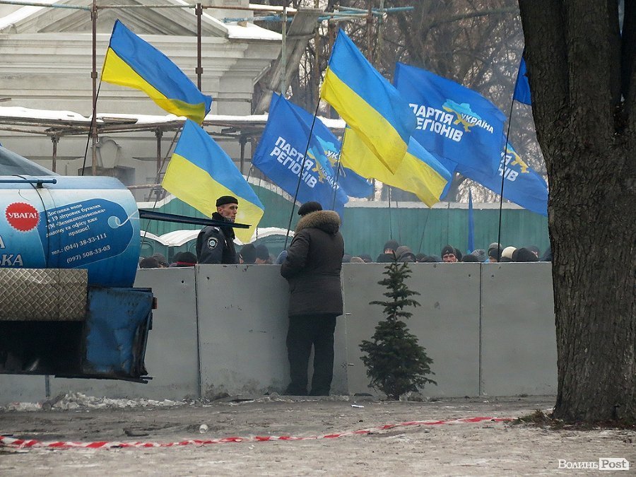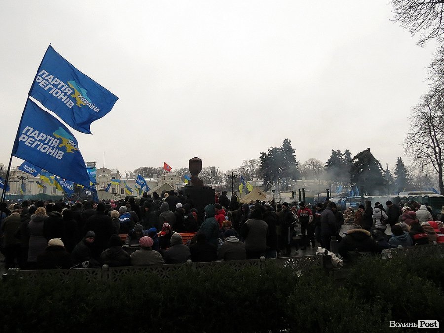 Сидить хлопчина - обличчя надійне, очі добрі, одяг пристойний. Фууух, підходжу: "Можна з вами поговорити?" - "Можна" (усміхається). Сергій із Запоріжжя. Приїхав сьогодні, і коли я це пишу, вже, мабуть, поїхав. Говорить гарною українською, без суржика і натягнутості. Із Запоріжжя їх - 10. З-під напіврозстебнутої куртки виглядає прапор регіонів. Питаю: "Чому під курткою?" - "А що ж це за регіонал без прапора? (сміється) Спитають, а я скажу: "От він, є". Кажу: "Скажи чесно, за гроші приїхав?" - "Та звичайно. Як і всі тут. А ти на тому майдані була?" - "Звичайно, я ж звідти." - "А він далеко?" Розказую, показую на пальцях, кажу, щоб пішов подивився. "А мене туди пустять?", - питає. - "Звичайно, туди не пускають лише п'яних".