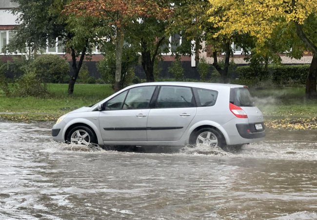На проспекті Відродження у Луцьку, поблизу міської лікарні, знову не сходить вода після рясного дощу.