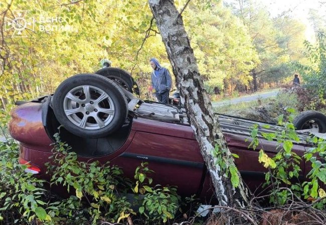 На Волині біля села Заліси Заболоттівської громади сталася аварія - автівка злетіла у кювет і перекинулася на дах.