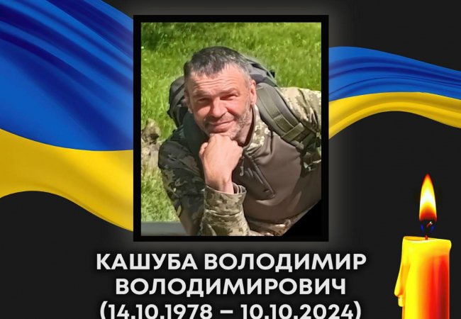 Прощання з воїном Володимиром Кашубою відбудеться завтра, 15 жовтня, у такому порядку: