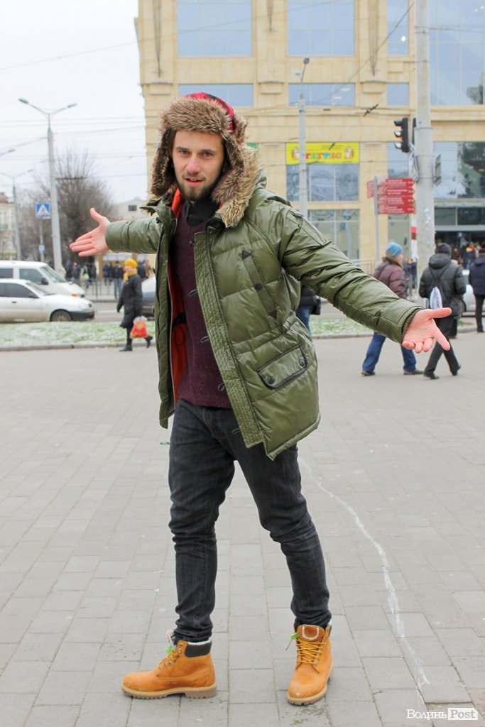 "Весь загальний лук хлопця – стильний. Все підібрано вдало, тільки, можливо, саме таку шапку-«вушанку» трішки зарано одягнув, як для такої погоди. Можна підібрати до цього образу також шапку із грубою в’язкою.