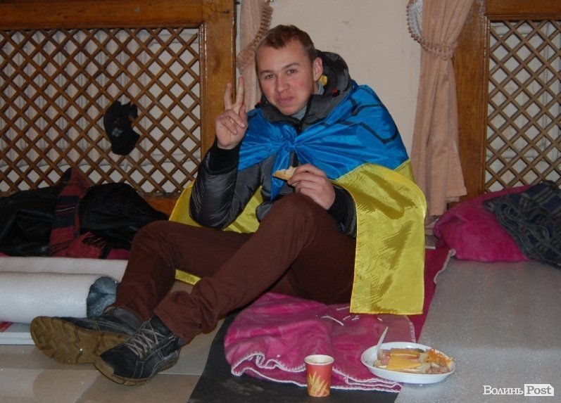Я – звичайний студент. Навчаюся у Східноєвропейському університеті на економічному факультеті. Приїхав, щоб підтримати народ України, щоб скинути цю владу, яка дійсно творить чудні речі в нашій країні. Корупція процвітає, ніхто людей не слухається, людей б’ють. На це все дійсно боляче дивитися. Бачити це і мовчати – просто гріх. Перед Києвом я постійно був на мітингах в Луцьку, штурмували облраду, ходили по навчальних закладах. Це перші в моєму житті такі революційні події. І це мене направду так запалило. Постійно в центрі всіх цих подій, не можу на пари ходити. Хоч я – староста групи, але плюнув на все це і два тижні мітингували, поки нас вже не почали просити ходити на пари, бо ж сесію треба складати. Два тижні моя група взагалі не ходила в університет, я й весь потік агітував, щоб не йшли на пари зовсім. Але в університеті поки проблем немає, викладачі з розумінням ставляться. Деякі навіть нам подарували додаткові бали за те, що ми беремо участь у Майдані.