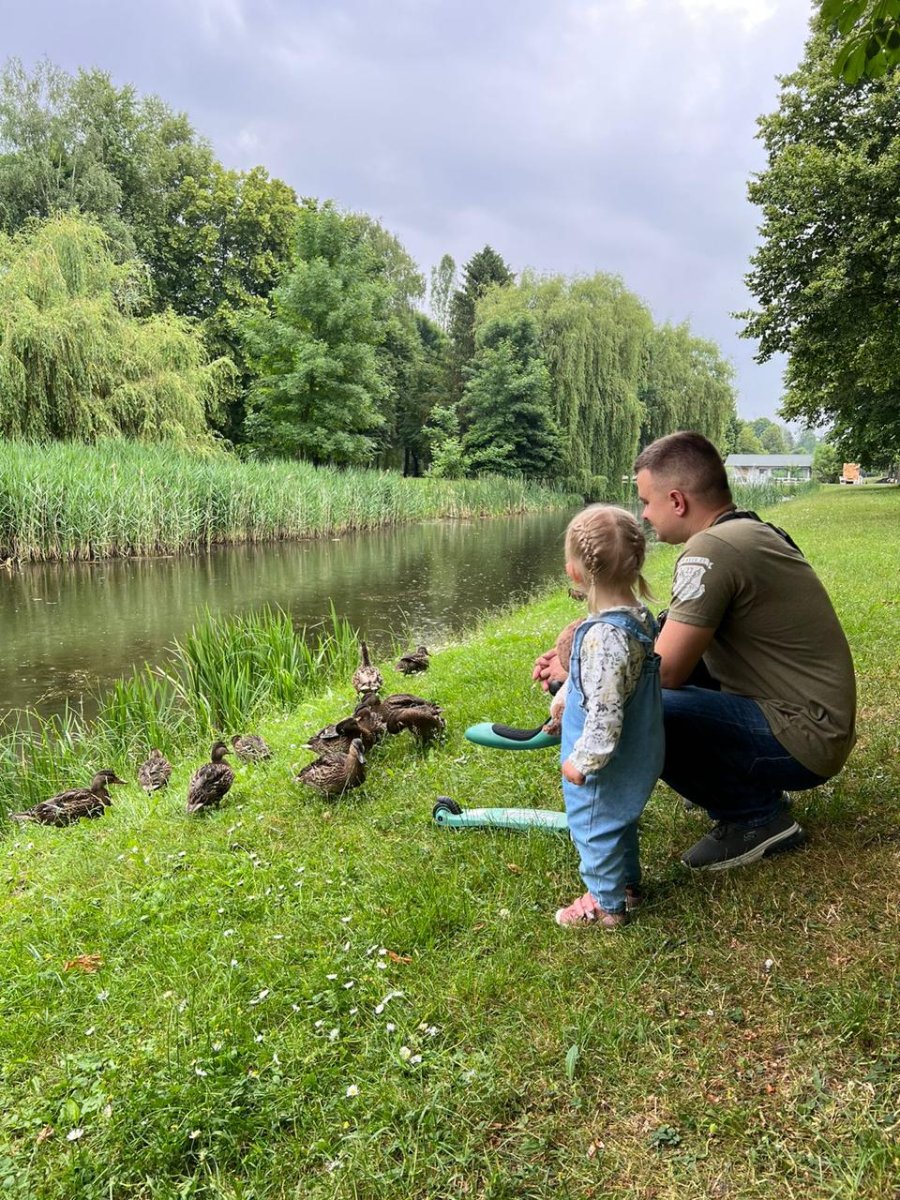 Побачили його з донечкою з балкону. Був, як завжди, у телефоні, комусь щось відписував… Швиденько написала повідомлення: «Скільки можна? Давай додому!» Він підняв голову, посміхнувся. Пішли гуляти в парк, попили кави… Перед сном Олексій помив донечці волосся, посушив, поклав її спати… Це насправді дуже трепетні моменти…