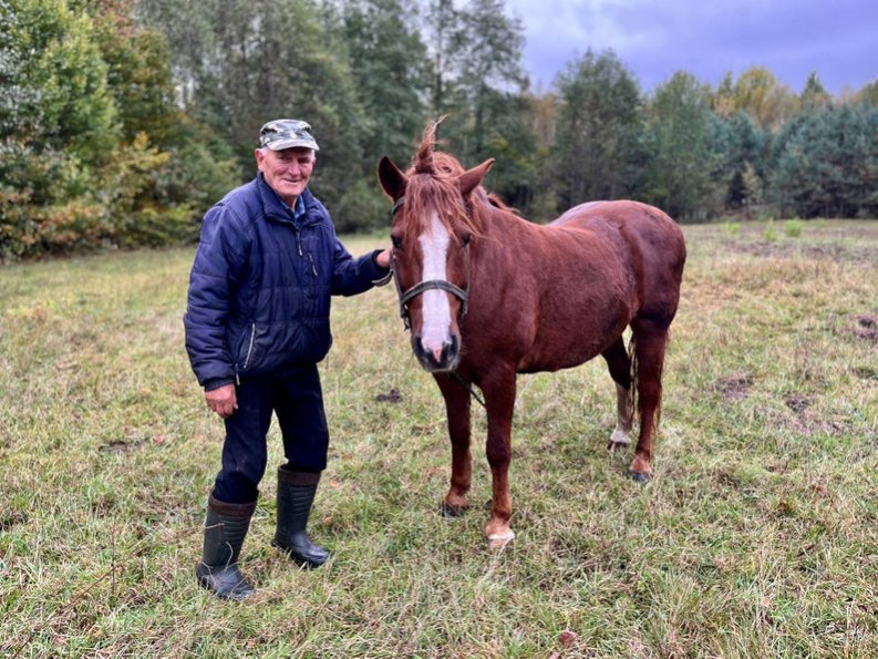 Дмитро Захарчук хазяйнує у хаті поруч із лісом спільно із Тетяною Завірюхою. "Є кінь, корова і Таня чорноброва", — жартує чоловік. Оселитися разом вони вирішили 14 років тому. Пенсіонери кажуть: удвох легше справлятися з буденними справами.