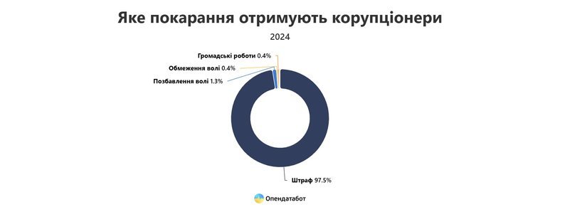 У 98% випадків цьогоріч злочинцям присудили штраф — це 1 714 вироків. Лише 1,5% засуджених отримали покарання у вигляді позбавлення волі — це 27 вироків, додали в Опендатаботі.