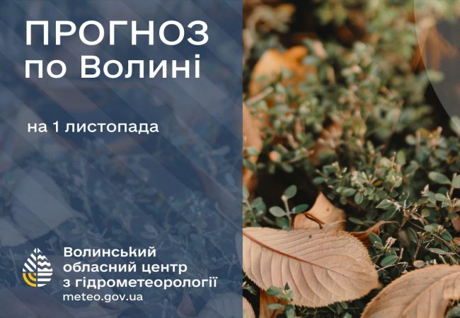 Волинський обласний центр з гідрометеорології опублікував прогноз погоди на 1 листопада.