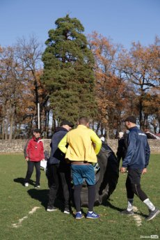 Від лінії «Старт-Фініш» на відстані 10 м розташовані 4 тумби висотою 125 см, біля кожної на землі знаходяться каміння вагою 70 кг, 80 кг, 90 кг.