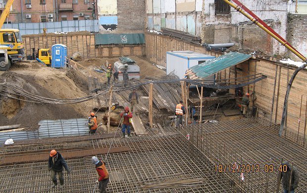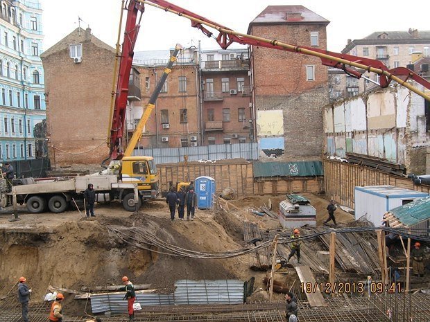 Нагадаємо, будівництво на місці залишків фундаменту палацу князя Володимира веде компанія "Інтергал-Буд" за замовленням УПЦ КП. У листопаді 2012 року УПЦ КП знесла будинок середини 19-го століття за адресою Десятинний провулок, 5, щоб побудувати на його місці комплекс будівель адміністративного, житлового та господарського призначення з підземним паркінгом.