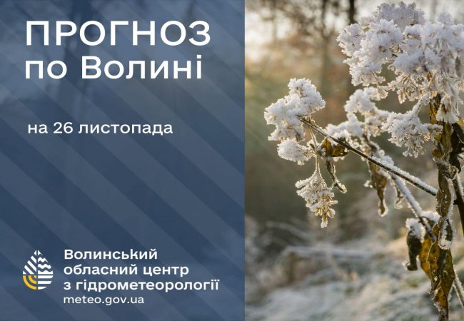Волинський обласний центр з гідрометеорології опублікував прогноз погоди на 26 листопада.