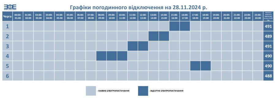 Де і коли не буде світла у четвер, 28 листопада