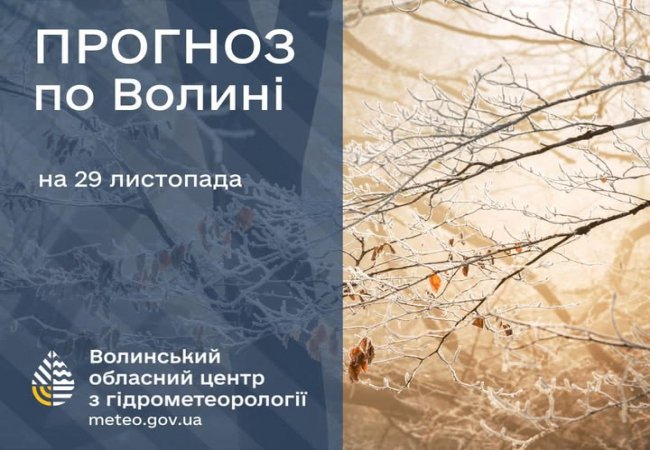 Волинський обласний центр з гідрометеорології опублікував прогноз погоди на 29 листопада.