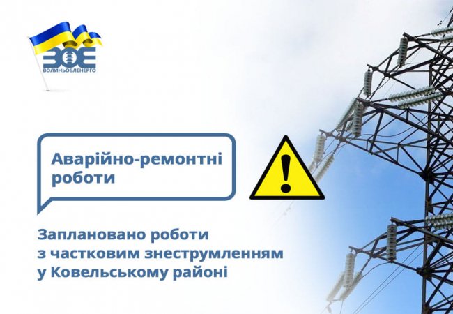 Завтра у значній частині Ковельського району тимчасово припинять електропостачання