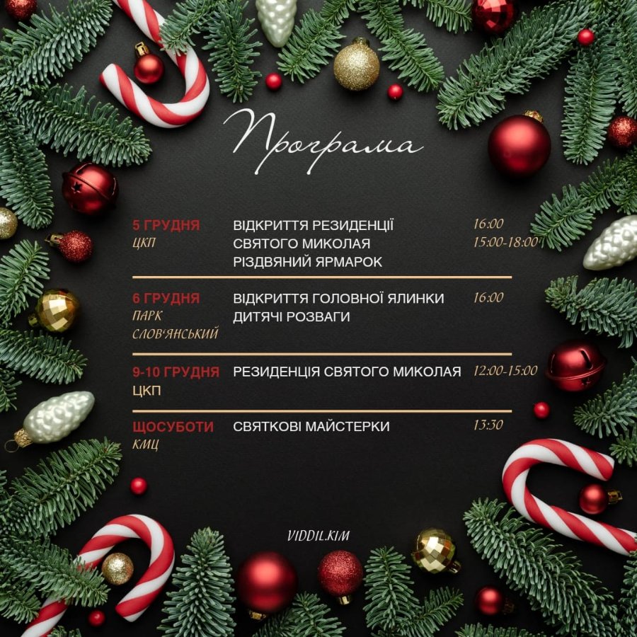Для наймолодших відвідувачів підготували незабутню зустріч із добрим Чудотворцем, подарунки, святкові сюрпризи та затишну атмосферу. У фоє Центру культурних послуг одночасно діятиме різдвяний ярмарок, де можна буде придбати сувеніри та смаколики.