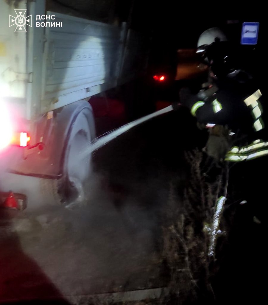 Увечері в селищі Любешів посеред дороги загорілася вантажівка. На місце події викликали рятувальників. Вони ліквідували горіння, що охопило заднє колесо вантажного причепа. За попередніми даними, до пожежі призвела несправність гальмівної системи автомобіля.