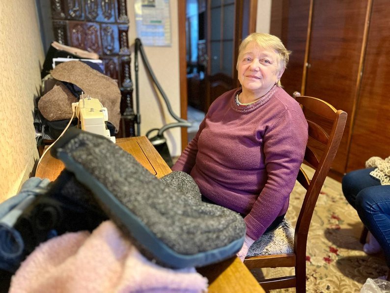 "За першу зиму ми пошили десь більш як 300, за минулу зиму 350, цю десь 50. Ми шили на 45 розмір, потім нам сказали, що трошки завеликі, стали на 44. Як почалася війна, я дуже пошкодувала, що я вже стара. Я би пішла на фронт, я в інституті дуже мітко стріляла", — сказала жінка.