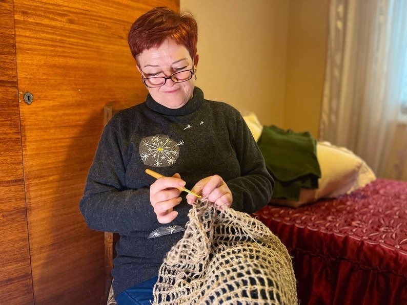 "Обов’язково натуральна, щоб в тепловізорі не було видно, бо то для розвідників, самі розумієте. Я в’яжу красиві речі:але зараз на красу часу не має. Спіднички, кофточки, блузочки. Як видається час, то краще взяти замовлення, заробити грошики, і купити якоїсь коноплі чи задонатити більше", — сказала волинянка.
