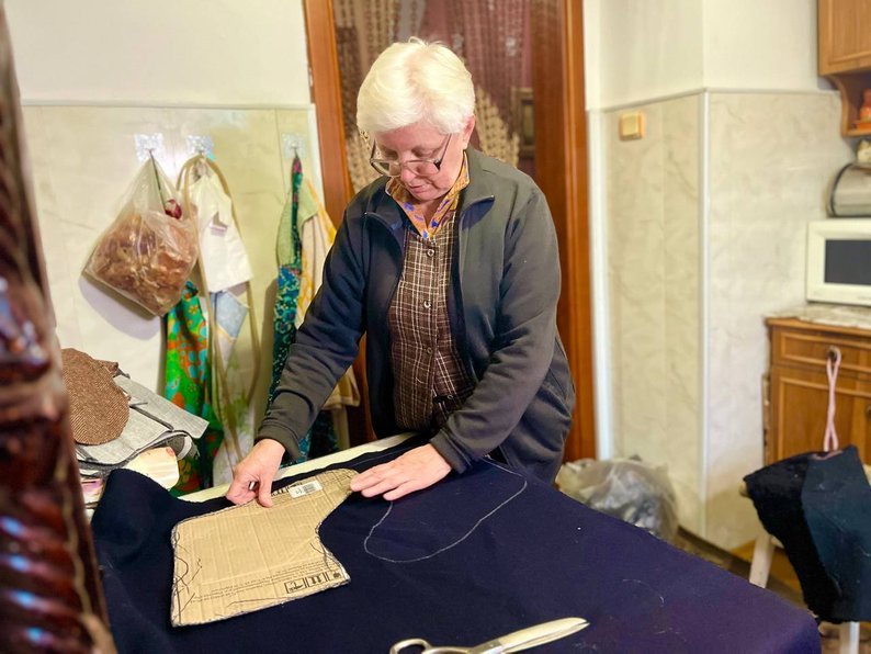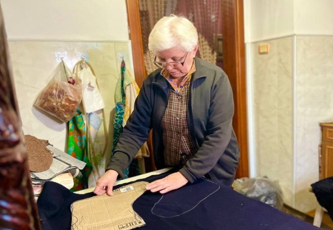 До початку повномасштабної війни 69-річна Віра Старчук професійно шити не вміла. Однак, з її слів, вже третій рік у її домі збираються волонтерки, які шиють бурки для військових. Також волонтерки займаються пошиттям бурок і у власних оселях.
