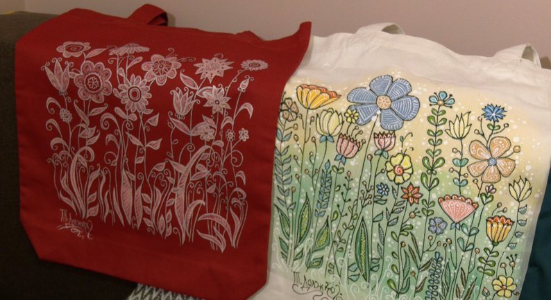 Військовослужбовця Тетяна Должко створює картини з українськими візерунками та розмальовані екошопери для допомоги ЗСУ. Волонтерити почала з 2014 року.