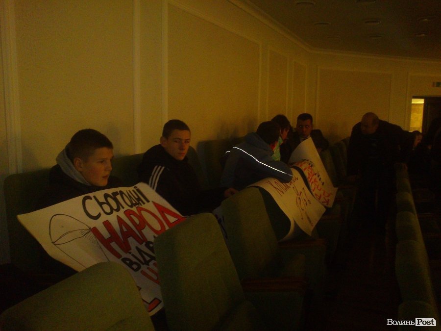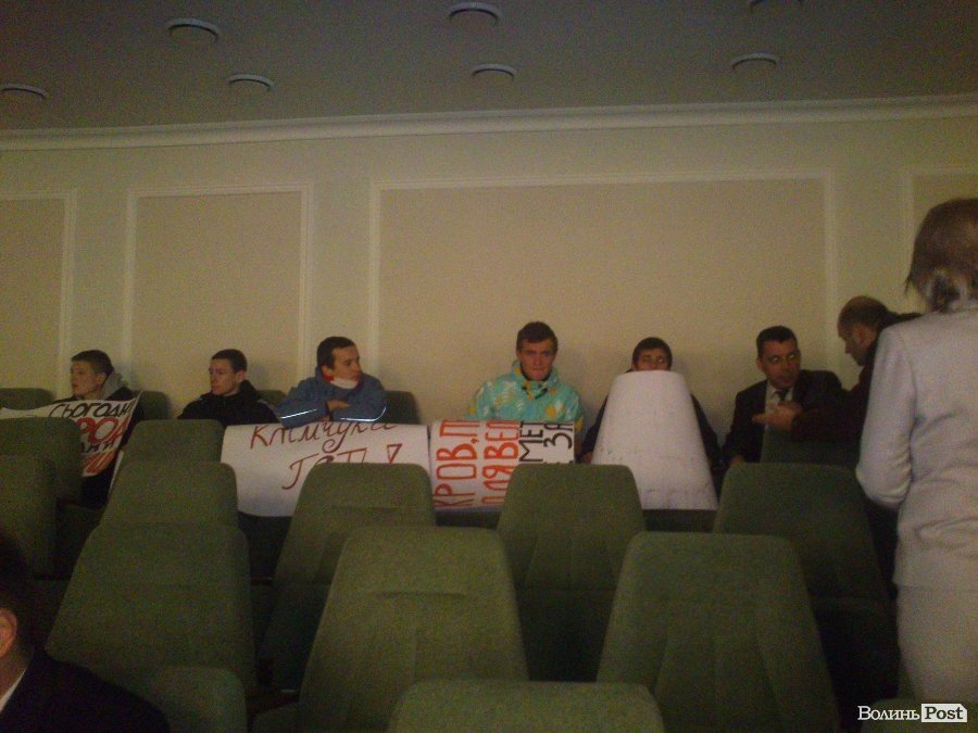 Приблизно пів десятка хлопців із плакатами прийшли до сесійної зали Волинської облради.