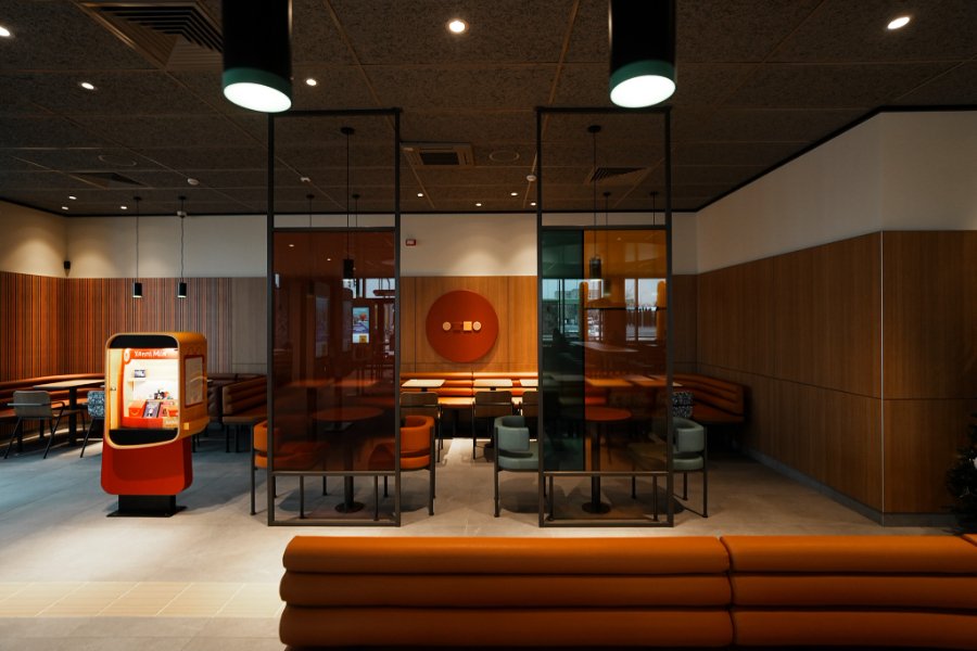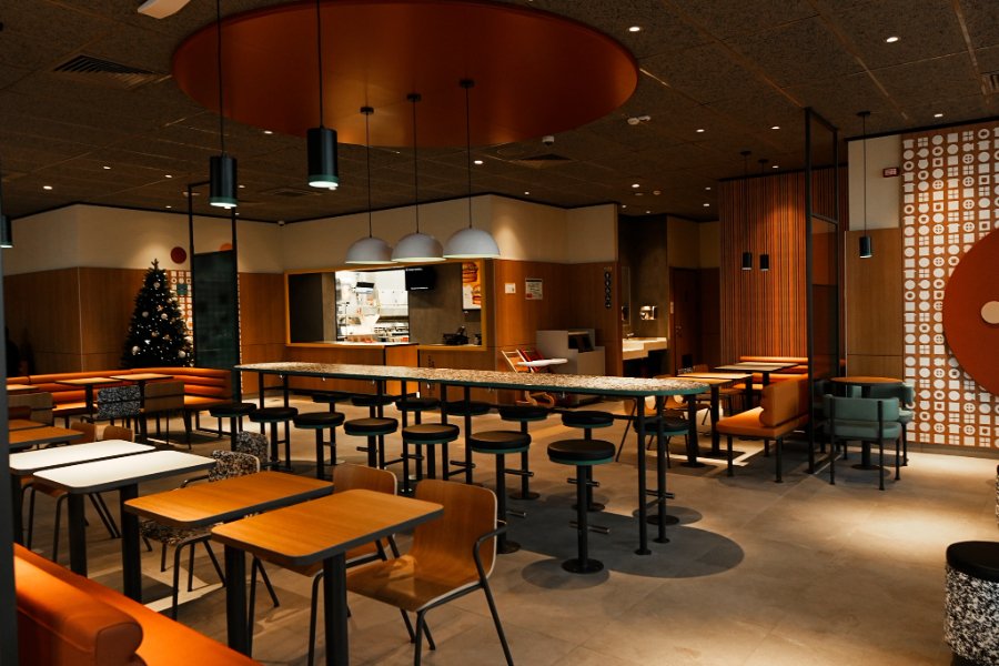 У просторому закладі площею 469 м² гості можуть розміститися в залі на 128 місць або на терасі на 126 місць. Ресторан працюватиме з 7:00 до 23:00. Тут доступні швидке та безконтактне замовлення на терміналах самообслуговування та замовлення на касі у працівників закладу.