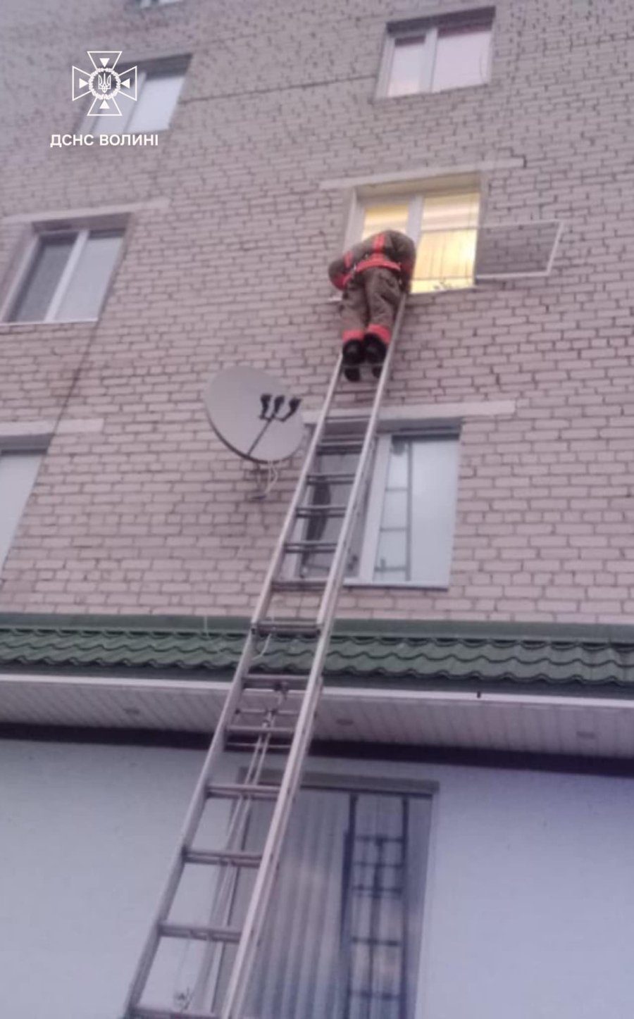 По триколінній пожежній драбині вони дістались до вікна квартири на 3-у поверсі, за допомогою механічного інструменту потрапили в квартиру, відчинили вхідні двері зсередини та надали доступ матері до оселі.