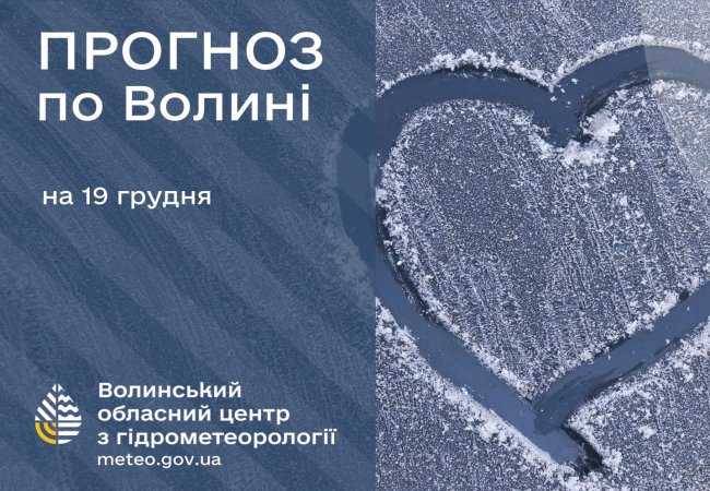 Волинський обласний центр з гідрометеорології опублікував прогноз погоди на 19 грудня.
