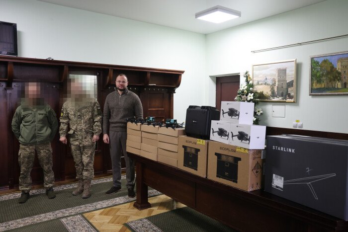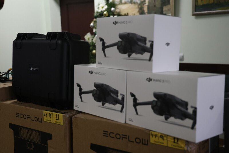 Для потреб військовослужбовців в/ч А4594 передано три квадрокоптери DJI Маvіc 3 Pro, квадрокоптер DJI Маvіc 3 Thermal, 15 тепловізійних FPV дронів, три системи супутникового зв’язку Starlink та дві зарядні станції EcoFlow Delta 2.