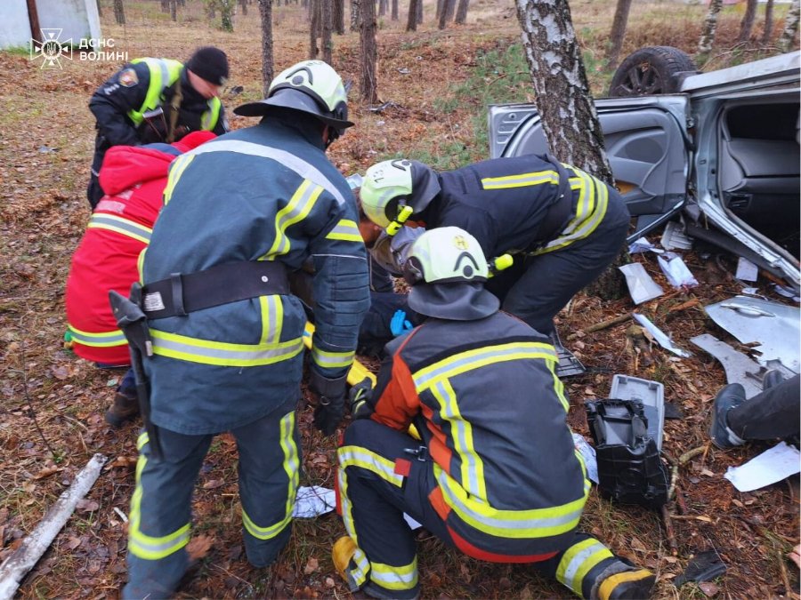 На місце події оперативно прибули рятувальники 13-ї Державної пожежно-рятувальної частини селища Маневичі. Попередньо встановлено, що постраждалих із понівеченого автомобіля дістали водії, які проїжджали повз місце події.