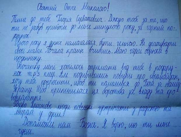 П'ятикласниця з Луцька Глорія Серватович написала Миколаю зворушливого листа.