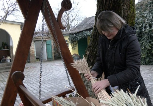 Майстриня з села Прилуцьке Тетяна Петлюк 15 років плете дідухи. Для їхнього оформлення використовує декоративні квіти, трави та злаки з власного городу.
