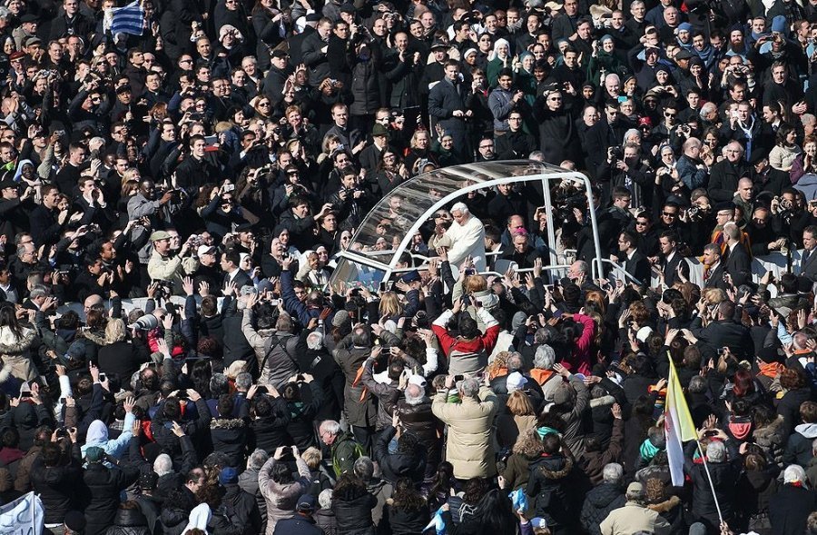 51. Папа Бенедикт XVI вітає віруючих на Площі Святого Петра у Ватикані. Це остання зустріч понтифіка перед зреченням