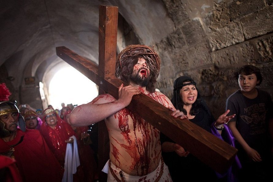 16. Американський паломник з «Надії Слави» на шляху Христа по Віа Долороза в Єрусалимі у Страсну п'ятницю