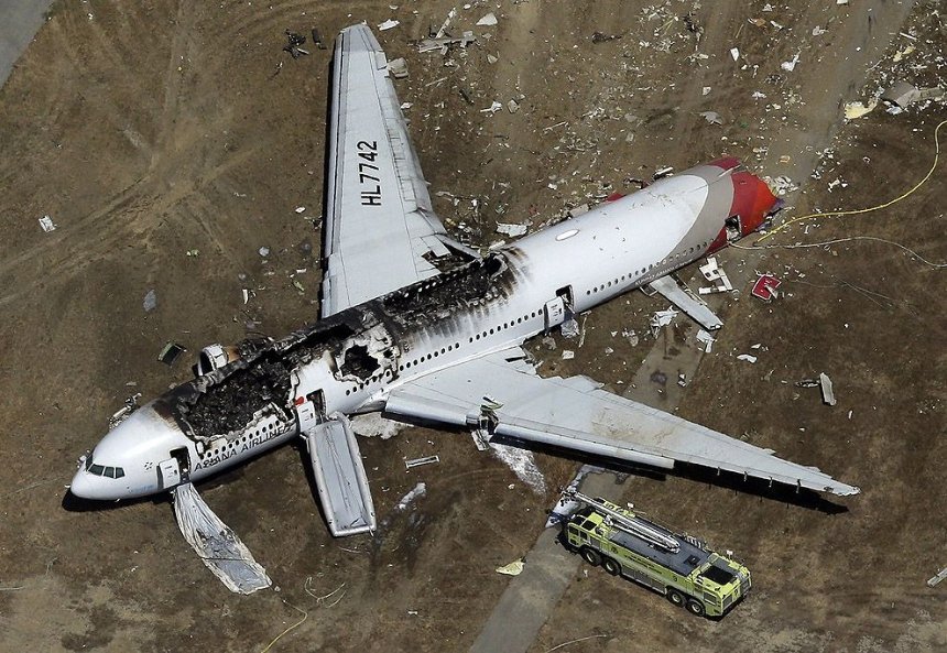 6. Боїнг 777, що належить авіакомпанії Південної Кореї після краху в Міжнародному аеропорту Сан Франциско