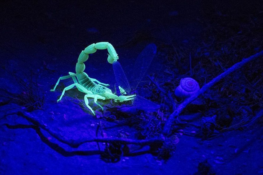 32. Жовтий скорпіон світиться в темряві, поки поїдає свою здобич в пустелі Негев в Ізраїлі. Ця пустеля була на другому місці серед десяти найбільш популярних туристичних напрямків у 2013 році