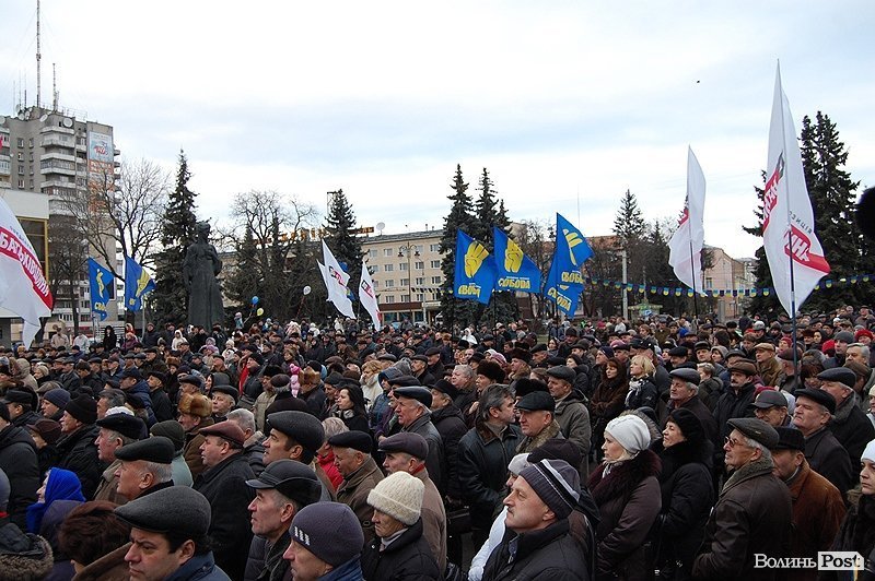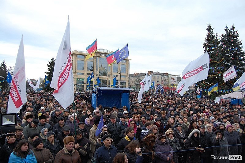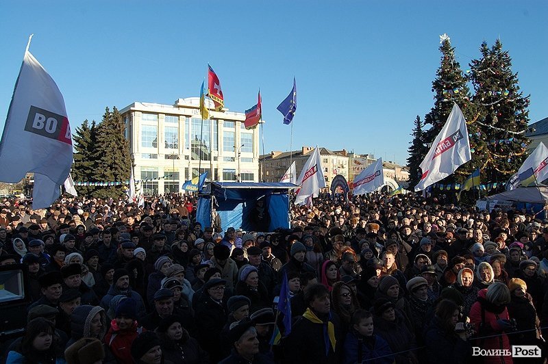 У центрі Луцька, на Театральному майдані, у неділю, 22 грудня, відбулося народне віче під гаслом «Ні репресіям!».