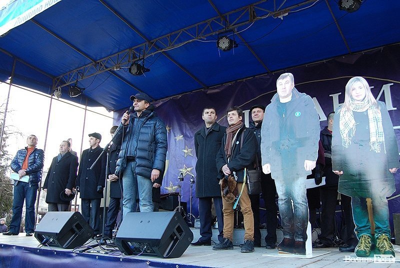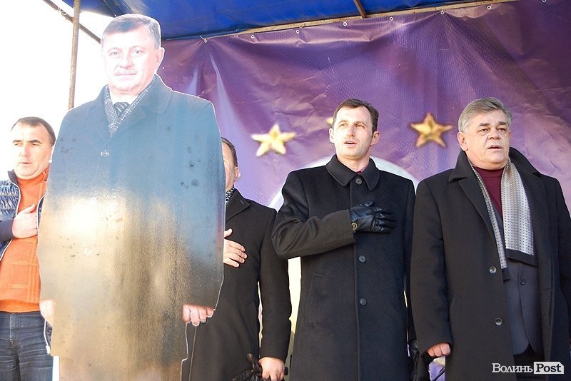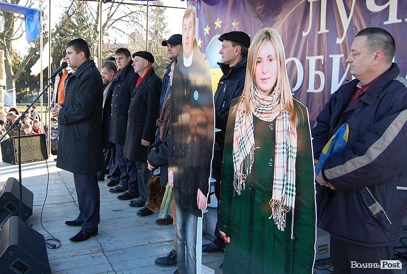 Вже традиційно до людей зі сцени звернулися громадські та політичні діячі Волині. А оскільки трьом активістам луцького Майдану (Богдан Шиба, Володимир Бондар і Майя Москвич) суд заборонив брати участь у масових заходах, то на сцену винесли пластикові макети у повен зріст усіх трьох активістів.