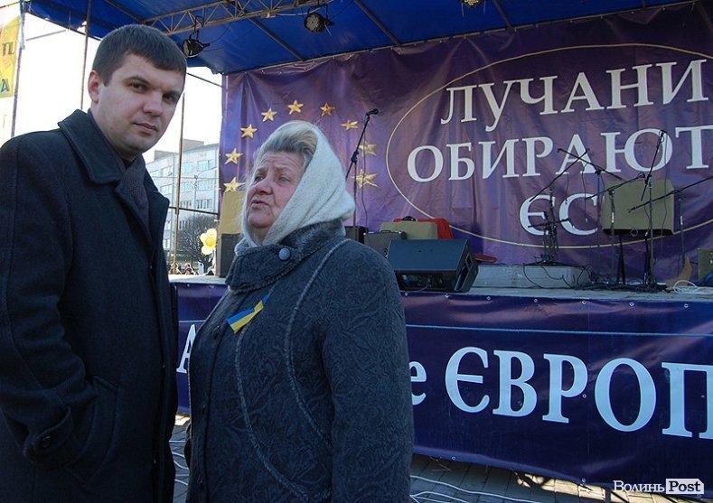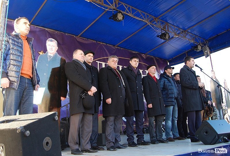 До присутніх на віче звернувся також голова Асоціації фермерів Волині, депутат Ковельської міської ради Віктор Лук'янчук (ВО «Батьківщина»). Він запевни, що усі волинські фермери підтримують Євромайдан і при потребі можуть вивести всю свою техніку, аби «прогнати злочинну владу».