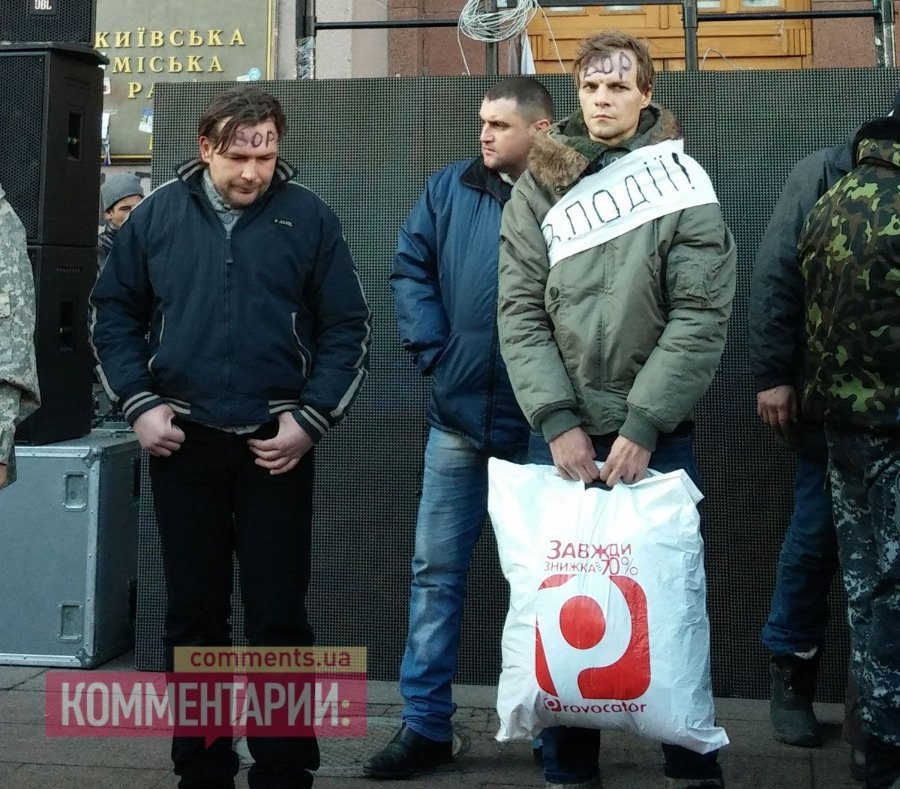 Люди біля КМДА готові були здійснити самосуд над уродженцями Макіївки, але Самооборона Майдану не дала бити злодюг, примусивши їх публічно вибачитися за свої діяння.