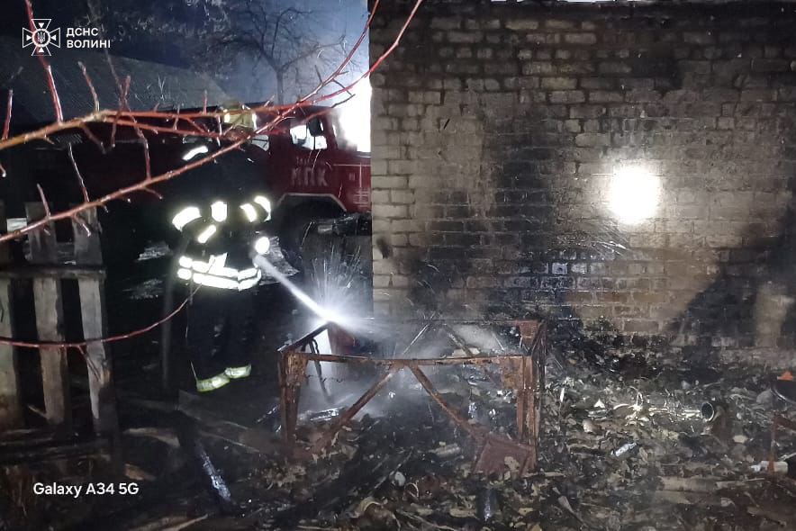 Пожежа виникла у цегляному гаражі. На місці події працювали вогнеборці 11-ї ДПРЧ селища Шацьк, а також місцеві пожежні команди сіл Піща та Пульмо.