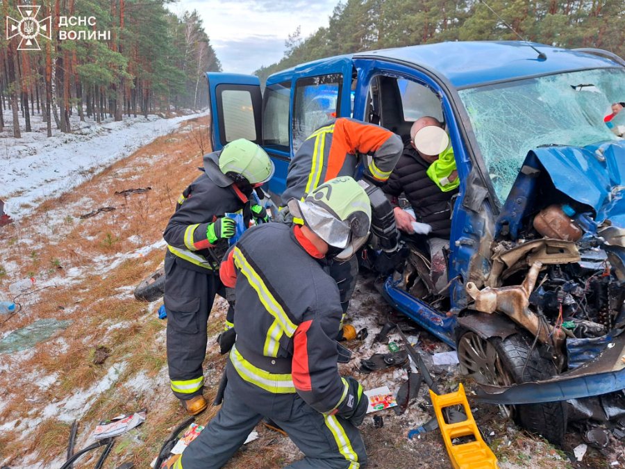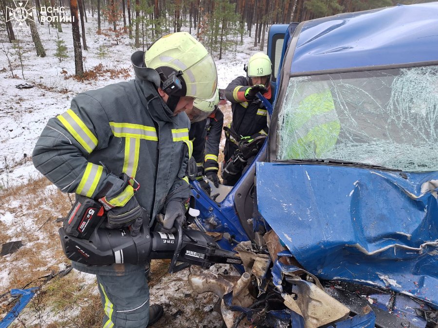 На Волині рятувальники деблокували трьох людей, яких затиснуло в авто внаслідок ДТП