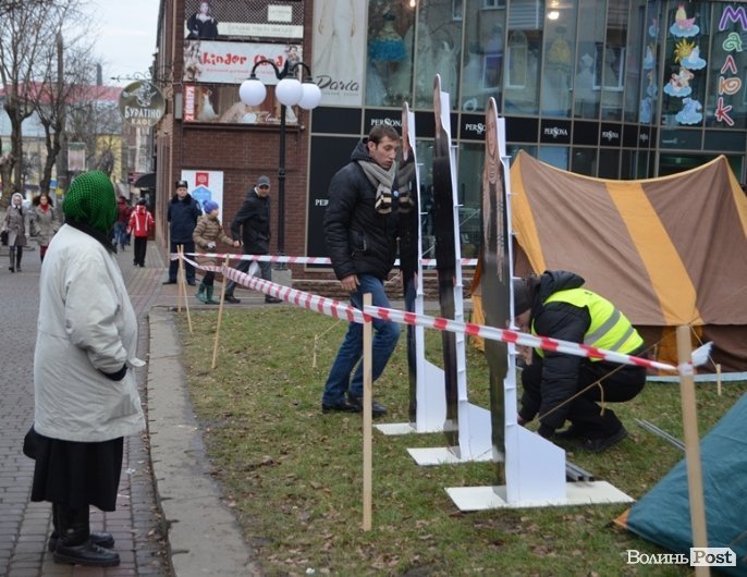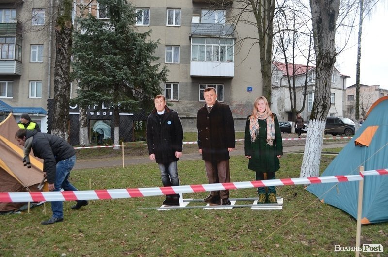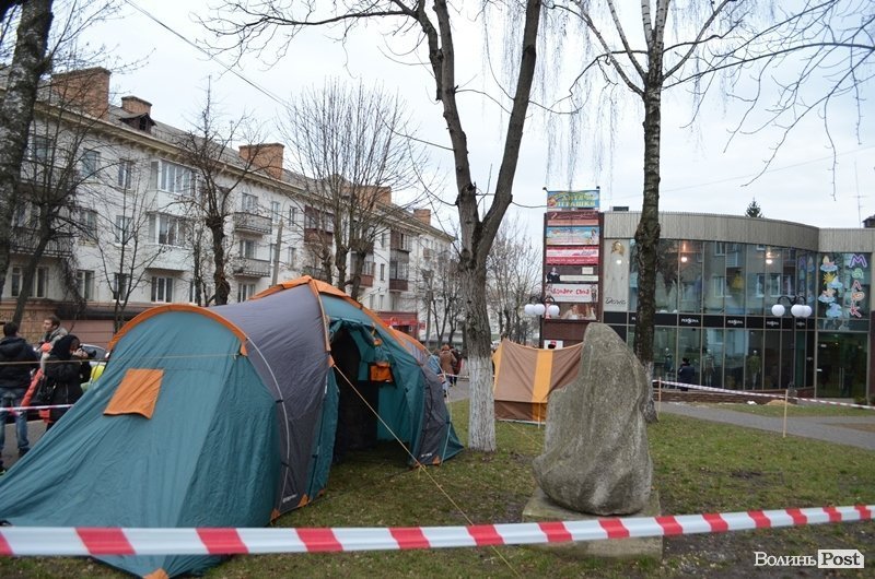 Тут постійно чергують активісти майдану. Втім, чи буде хтось ночувати нині невідомо. Серед вимог учасників містечка – «припинення репресій» щодо учасників луцького євромайдану, а також відставка прокурора Волині Андрія Параки.