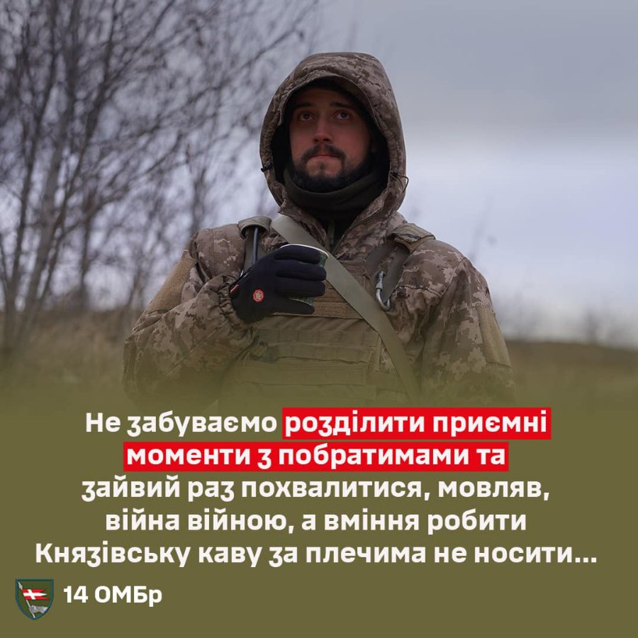 Військовослужбовці 14 окремої механізованої бригади імені князя Романа Великого, які з перших днів повномасштабного вторгнення росіян захищають Батьківщину, поділилися рецептом приготування особливої кави.