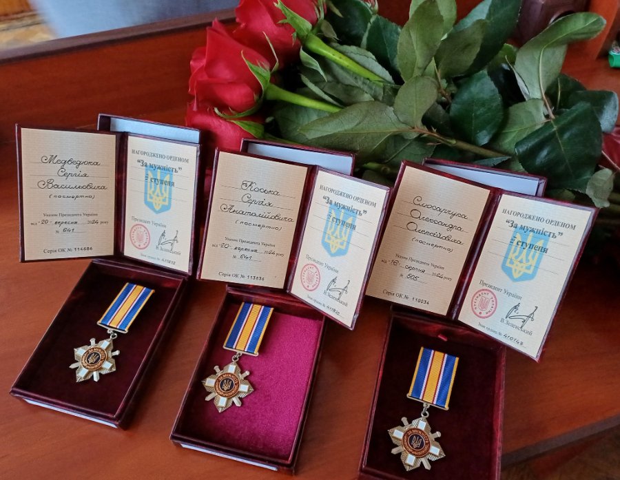 Указом Президента України орденами "За мужність" ІІІ ступеня (посмертно) нагороджено Сергія Коська з Черевахи, Сергія Медведюка з Черська та Олександра Слюсарчука з Новосілок. Усі вони були гідними патріотами і з честю виконали свій військовий обов’язок.