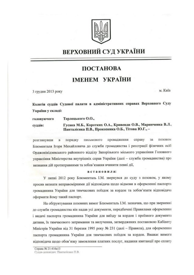 Закордонний паспорт коштує 170 гривень, - Верховний Суд України